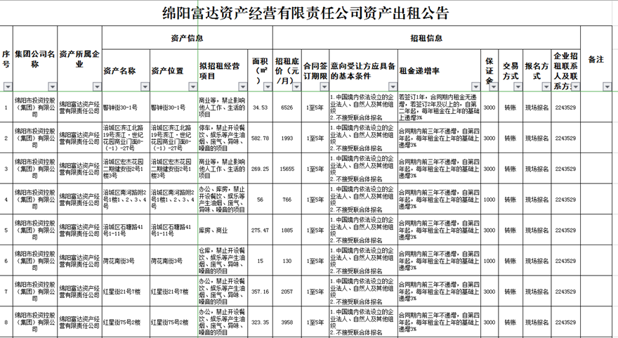 綿陽(yáng)富達(dá)資產(chǎn)經(jīng)營(yíng)有限責(zé)任公司資產(chǎn)出租公告