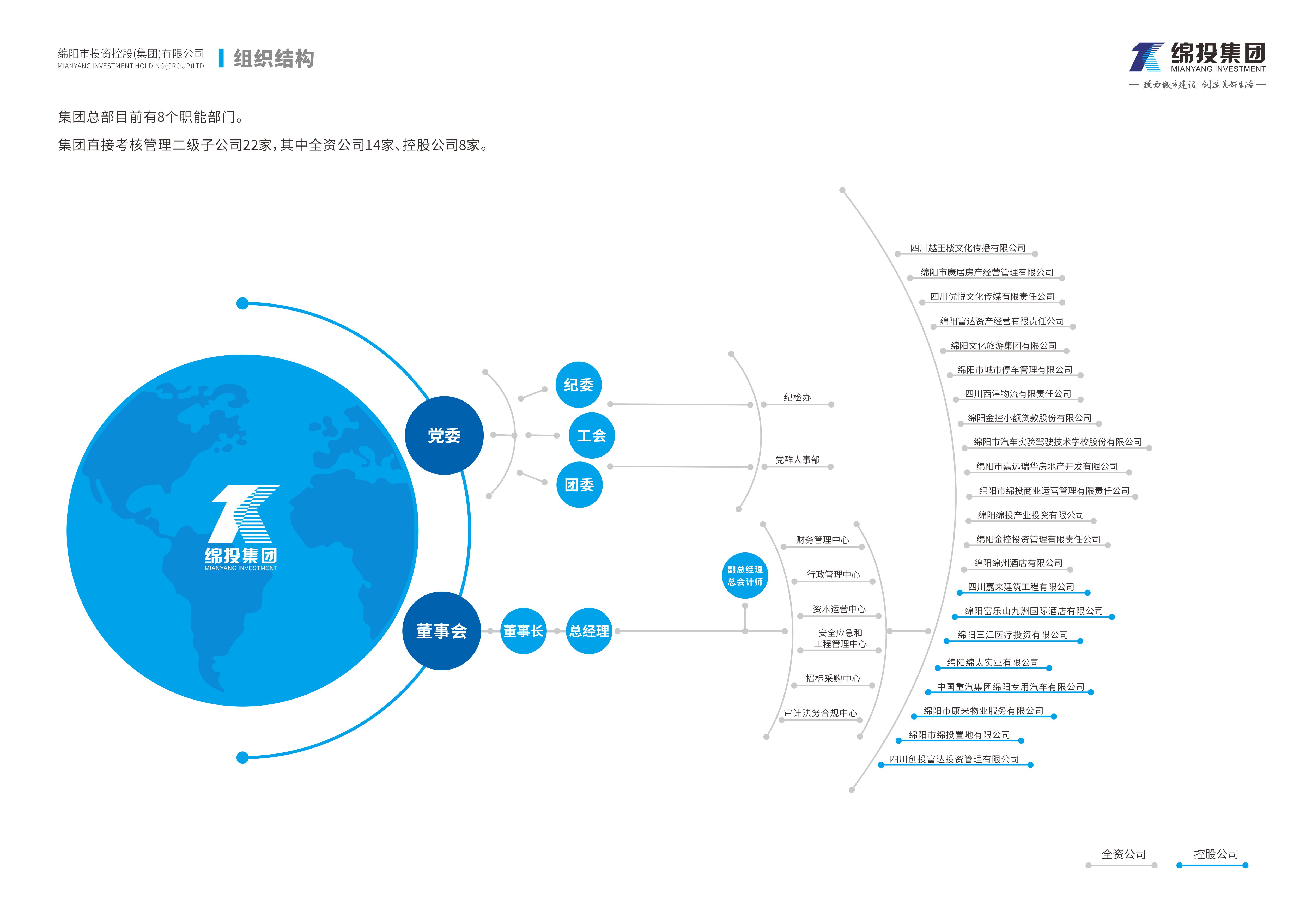 集團(tuán)直接考核管理二級(jí)子公司22家,其中全資公司14家、控股公司8家。